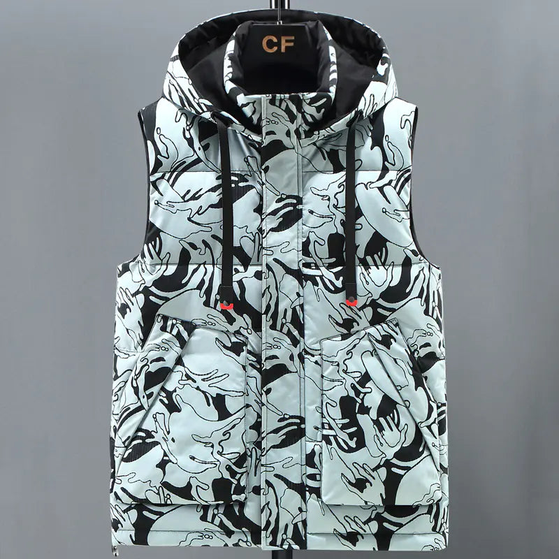 Gilet da uomo mimetico con cappello caldo staccabile per autunno/inverno