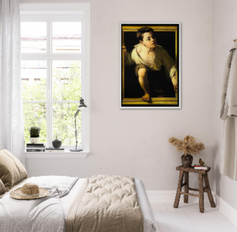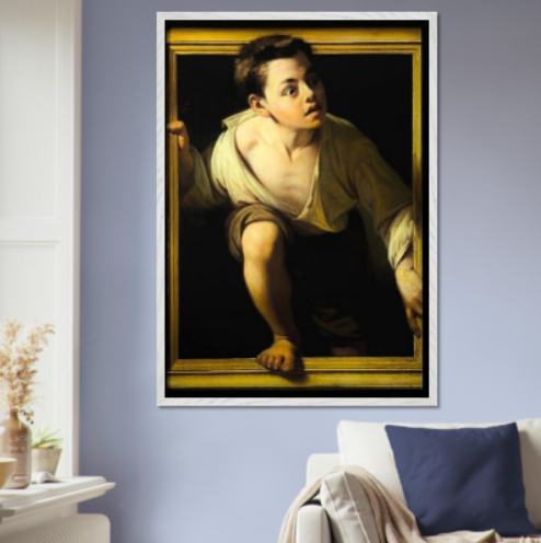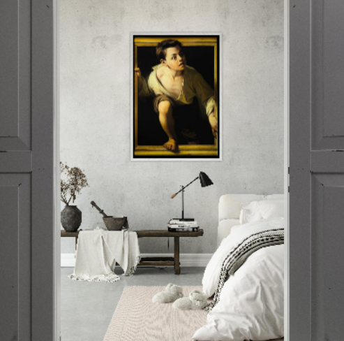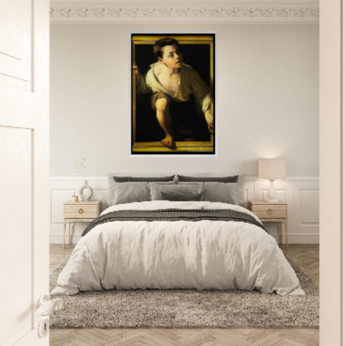 Il poster Il ragazzo che esce dal quadro di Michelangelo Merisi da Caravaggio riproduce una delle opere più affascinanti e rivoluzionarie del primo periodo dell'artista. Realizzato tra il 1596 e il 1598, il dipinto è celebre per il suo straordinario realismo e per l'effetto illusionistico con cui la figura sembra letteralmente oltrepassare i confini della tela, coinvolgendo direttamente l'osservatore.