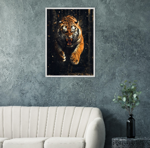 Il poster Tigre della collezione Natura e Animali è un complemento d’arredo di forte impatto visivo, pensato per chi desidera portare in casa l’energia, l’eleganza e la maestosità del mondo selvaggio. L’immagine della tigre, simbolo di forza e bellezza naturale, è resa con colori intensi e dettagli definiti grazie alla stampa su carta semi-lucida di alta qualità.